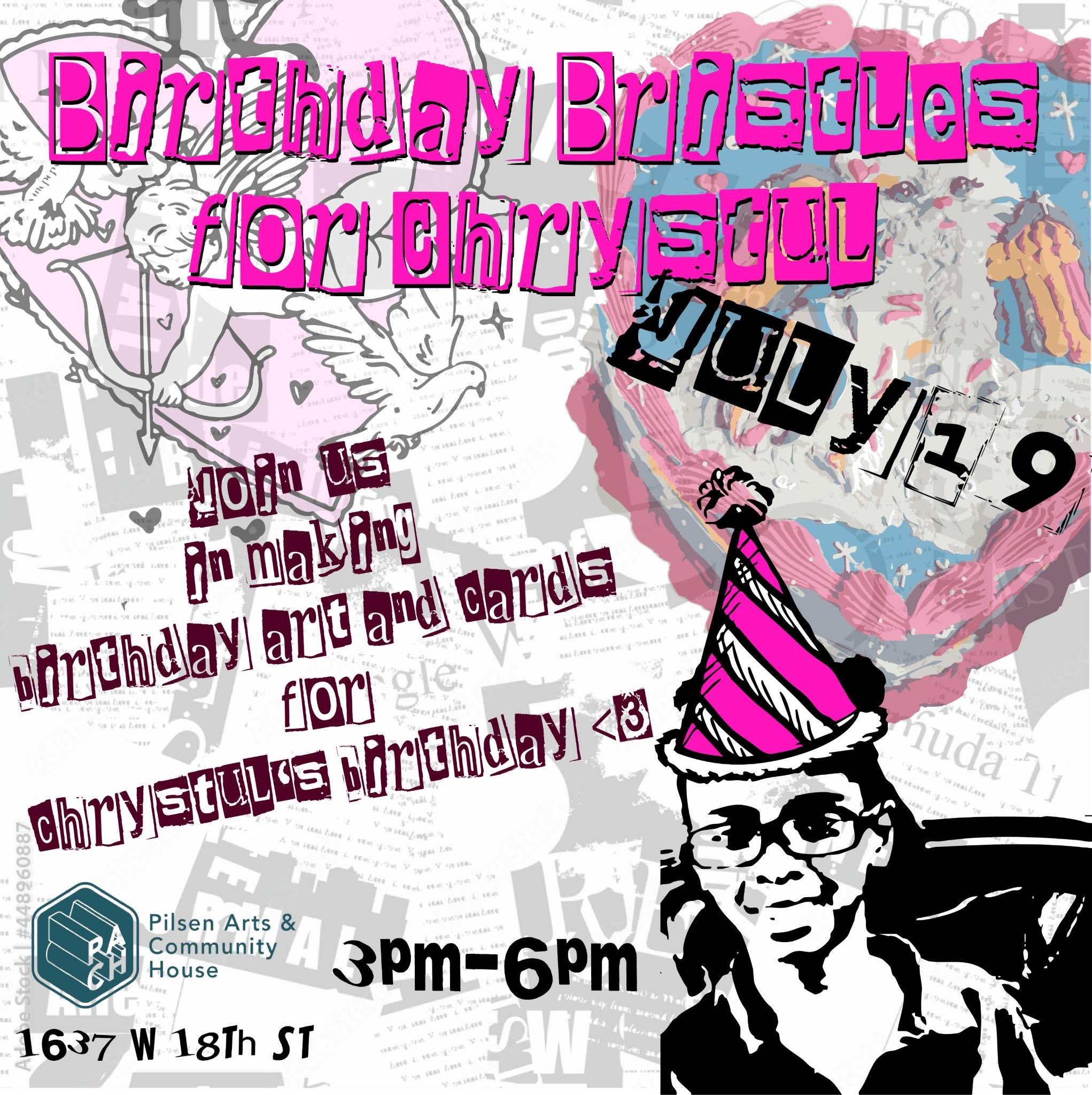 JOIN US AT PILSEN ARTS & COMMUNITY HOUSE AS WE MAKE BIRTHDAY CARDS FOR CHRYSTUL ALONGSIDE OUR FRIENDS AT SWOP CHICAGO.